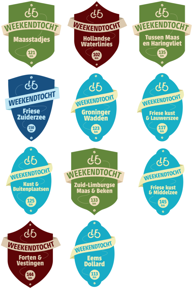 De routes hebben een regionaal karakter en een eigen naam. Elke LF-weekendtocht heeft een beeldmerk, afgeleid van de LF-route.