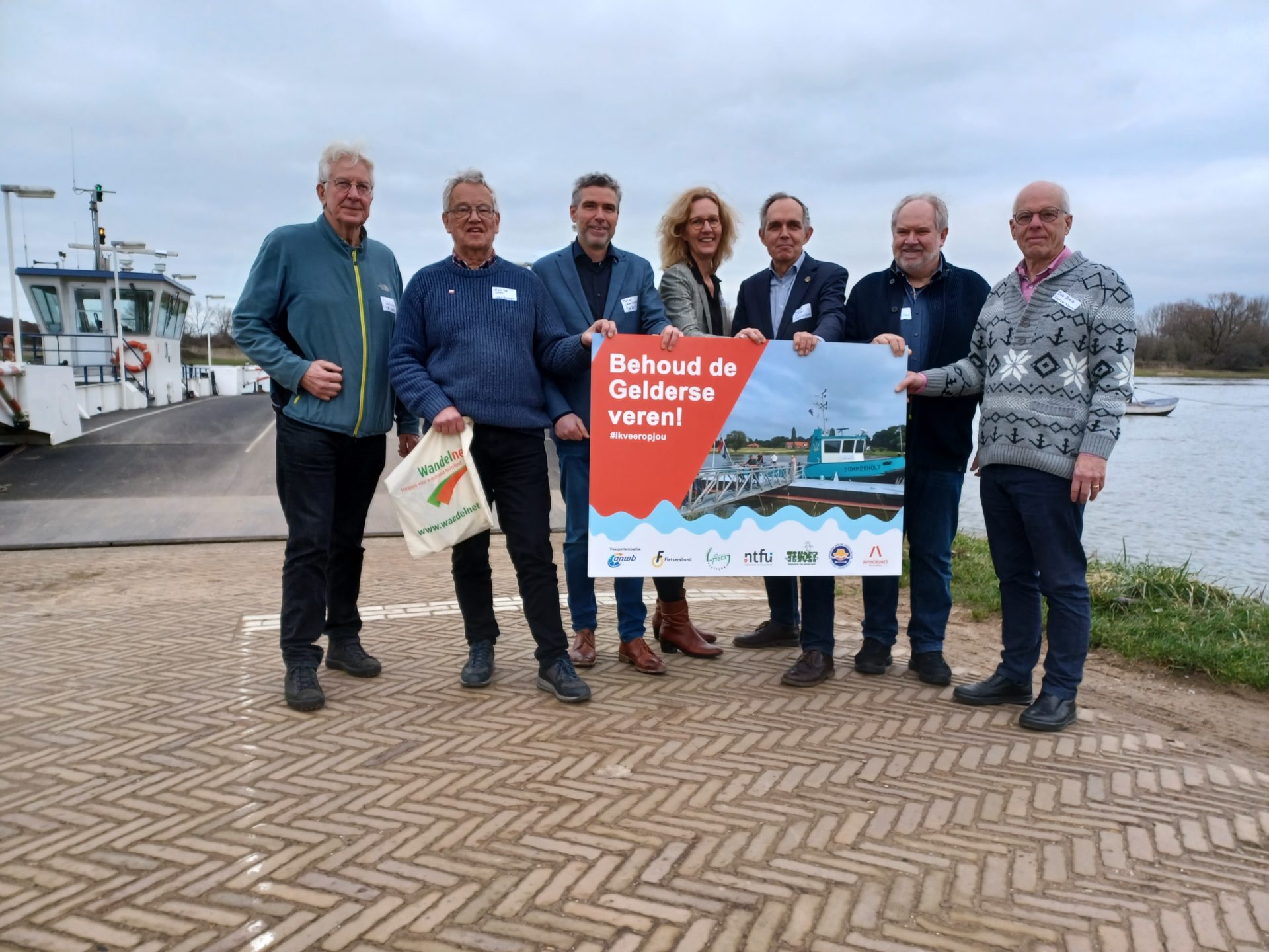 Veerpontencoalitie van ANWB, Fietsersbond, Fietsplatform, NTFU, TeVoet, Ver. Vrienden van de Veerponten en Wandelnet voeren een gezamenlijke actie voor het behoud van de veren, vaartijden en betaalbaarheid. Als ondertekenaar van de petitie vraag je de provincie Gelderland om de veren in de vaart te houden. Of als het echt niet anders kan met een volwaardig alternatief op dezelfde plek te komen. Inmiddels is de petitie al bijna 16.000 keer ondertekend.