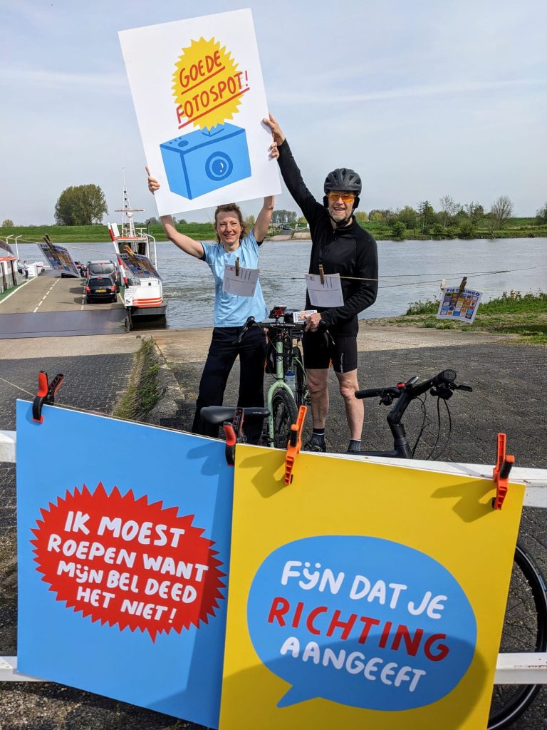 Het complimententeam van de Alliantie Samen Fietsen strooide met kudos en complimenten aan alle fietsers die voorbijkwamen. Ook wethouders Martine de Bas en Pieter Neven van de Gemeente Buren spraken de nodige fietsers bij het veer in Beusichem. Gewone fietsers, wielrenners, e-bikers, handbiker, toerfietsers en nog veel meer mensen toverden een glimlach op hun gezicht bij het ontvangen van een compliment. Het was een geslaagde dag, getuige de blije foto’s hieronder 🚲🌞. Lees ook het verslag op ons consumentenportal.