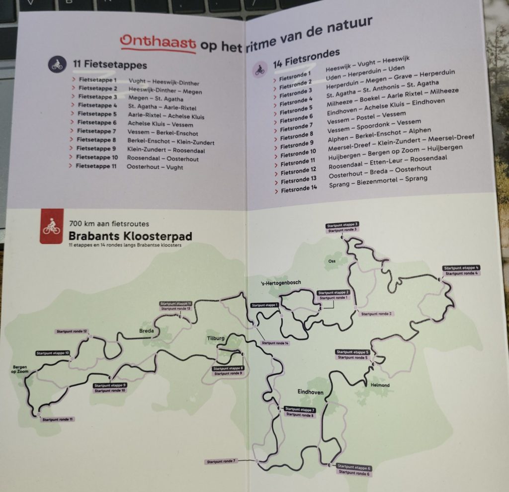 Brabant bood al een wandelnetwerk langs kloosters met het Brabants Kloosterpad. Nu kunnen fietsers ook op verkenning. De nieuwe routes leiden langs 50 kloosters en meer dan 500 kapellen. Hiermee heeft de provincie het grootste aanbod aan fiets- en wandelroutes binnen het thema kloosterleven in de Benelux.