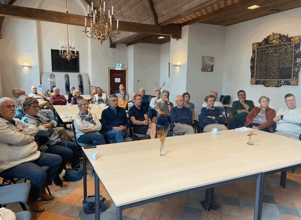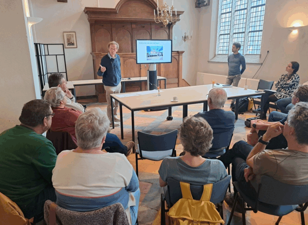 Tot slot gaf vrijwilliger Hans de Graaff, die de fietstocht voor de middag had uitgestippeld, een presentatie over de route. Hij vertelde interessante feitjes over bezienswaardigheden die we onderweg zouden tegenkomen, zoals de Koppelpoort, de Amersfoortse Kei en de Onze Lieve Vrouwentoren.