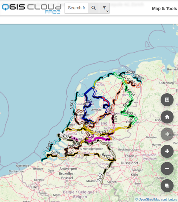 Op de kaart zie je alle trajecten in Nederland. Deze kaart is via deze link ook online interactief beschikbaar. Je kunt hierin inzoomen om precies te zien waar een traject begint en eindigt en hoe de route loopt.