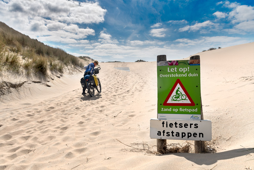 Zandverstuivingen die door natuurbeheerders worden opgewekt met bomenkap en het weghalen van helm bedreigen fietspaden langs de kust.